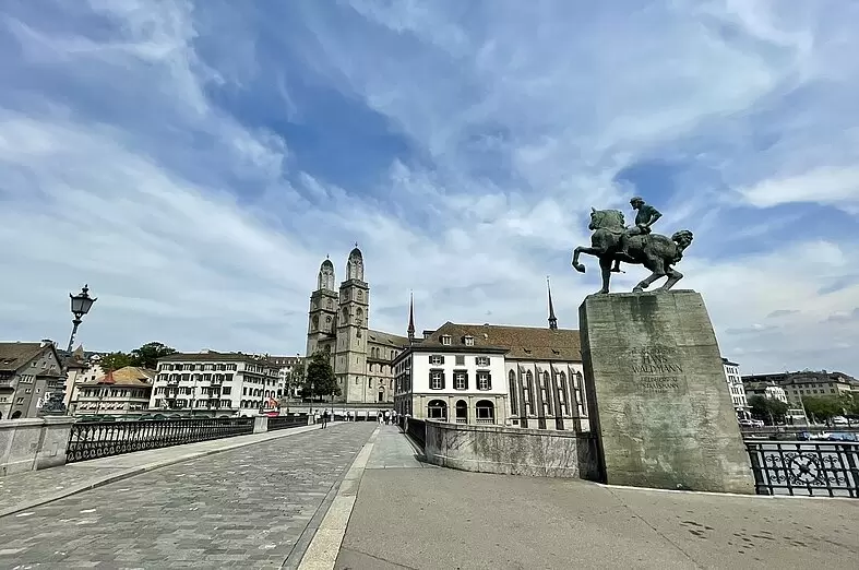 Your first stop is a scenic photo opportunity at Lake Zurich, where the brilliant blue of the water meets the backdrop of gentle hills. From there, explore Zurich’s historic Old Town on a guided walk through medieval alleyways, discovering remarkable landmarks such as the Church of St. Peter with its massive clock face, the twin-towered Grossmünster church, and the artistic Fraumünster church.